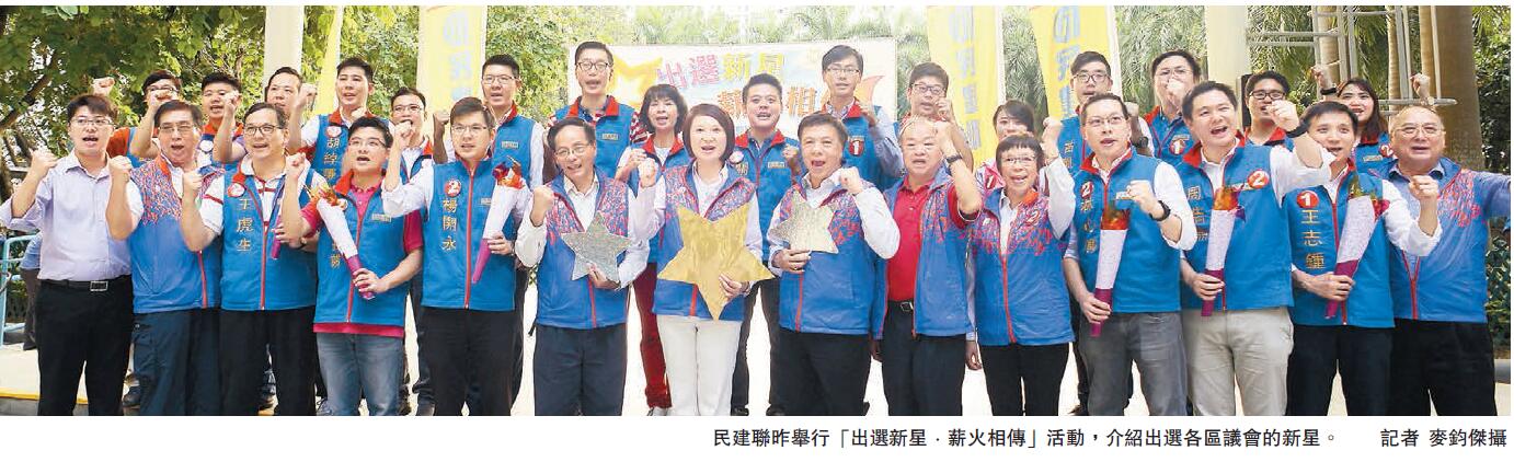 新一屆區議會即將誕生,民建聯早前宣布共有36名新戰將參選,冀以年輕、專業、有干勁的形象,為各地區注入新氣象。該黨昨日於中西區卑路乍灣公園舉行「出選新星薪火相傳」候選人推介活動,36名「區選新星」逐一亮相,民建聯主席李慧瓊、立法會議員鍾樹根、葉國謙,以及青年民建聯主席顏汶羽等亦有出席,為一眾新星打氣。