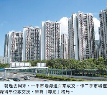 【香港商報訊】記者鄭達偉報道:新盤折讓開賣,二手持續冰冷,似乎是近來本港樓市的寫照。過去周末,一手市場錄逾百宗成交,惟綜合各大地產代理統計,二手市場僅錄得單位數交投,維持「尋底」格局。