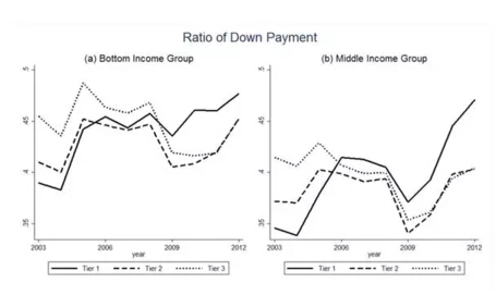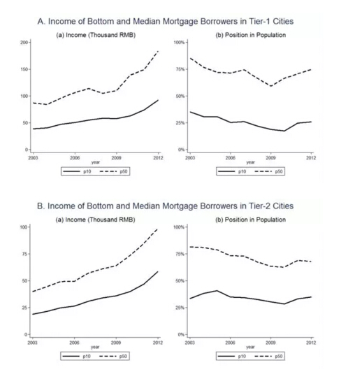 然而需要注意的是,對于那些「富人」來說,購買房屋時有可能直接全款購房,并不需要借助抵押貸款,因而作者的這部分數據對于中產、相對低收入的購房家庭更有解釋力。