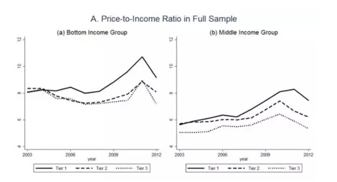 然而,在過去十年中,中國的房價究竟上漲了多少?在中國的不同城市,房價上漲是否形式上有所不同?高漲的房價使得低收入群體排除在房市之外么?家庭買房的負擔就多大?這些問題至今仍然少有嚴謹的研究,而搞清楚這些問題對于理解中國的房市顯然是十分重要的。