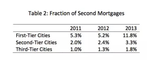 一個經常被關注的點是,許多人擁有多套住房。上表給出了2011-2013年抵押貸款買房的樣本中,二套房的比例。因為富人可能使用現金直接買房,因此以上的數據嚴重低估了二套房的比例。