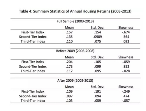 作者計算了2003-2013中國120個城市的房價指數(此處的房價指數為名義指數),而在此期間平均通脹率為2.68%,相對于房價上漲來說相對微小。