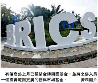 另一方面,高盛的金磚時代畫上句號。由於連年虧損,高盛計劃關閉旗下投資巴西、俄羅斯、印度和中國等金磚四國的基金,更稱預期在可見的將來,該基金都不會有顯著增長。這批推出9年的基金,在過去近5年虧損21%,自2010年高峰期計更勁蝕88%。