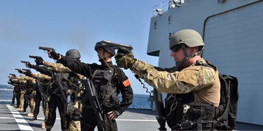 当地时间11月7日,由中国导弹驱逐舰济南舰、导弹护卫舰益阳舰和综合补给舰千岛湖舰组成的舰艇编队与美海军舰艇在美国佛罗里达州梅波特港东南方向的大西洋海域举行联合演练。这是中美海军首次在这一海域举行联合演练。