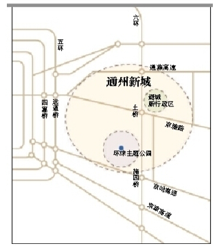 文化服務區在通州新城南部,日前開工的環球主題公園位于此處。