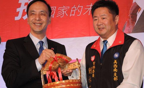海外黨員贈送小禮物迎接朱立倫。(中評社 黃筱筠攝)