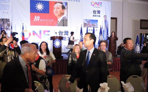 朱立倫10日晚間在洛杉磯希爾頓飯店與僑界聚會。