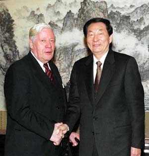 2000年12月1日,時任國務院總理朱镕基在北京中南海會見德國前總理施密特