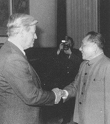 施密特政治生涯與中國聯系緊密。1971年時任國防部長施密特敦促總理勃蘭特與中國建交,1975年施密特以總理身份首次訪問中國。過去近40年里,他曾十余次訪問中國。