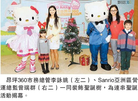 【香港商报网讯】记者王卓轩报道:刚获政府批发「海外宣传配对基金」的昂坪360昨日宣布,将於12月至明年3月期间举行「Hello Kitty开心萌游昂坪360」,届时人气卡通人物Hello Kitty将与家人、好友等角色现身昂坪缆车及昂坪市集,部分Hello Kitty还将换上充满大澳风情的服饰,将大澳特有的文化人情风貌、特色美食呈现给旅客,一次过满足与Hello Kitty拍照及体验大澳水乡风情两个愿望。