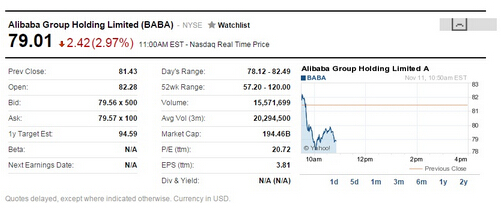 不過令人意外的是,開盤后阿里巴巴股價開始下跌,跌幅一度超過3%,股價最低達到78美元。