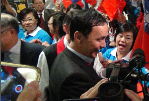 朱立伦于美东时间11月11日下午抵达华府後,国民党大华府地区的後援会晚间为朱立伦举行胜选侨宴,席开56桌,在「冻蒜」声中,朱立伦向海外支持者催票,诉求大家的团结要化为行动力量。