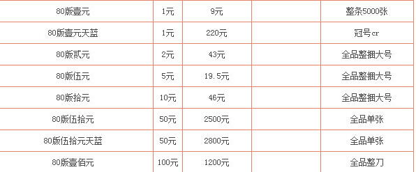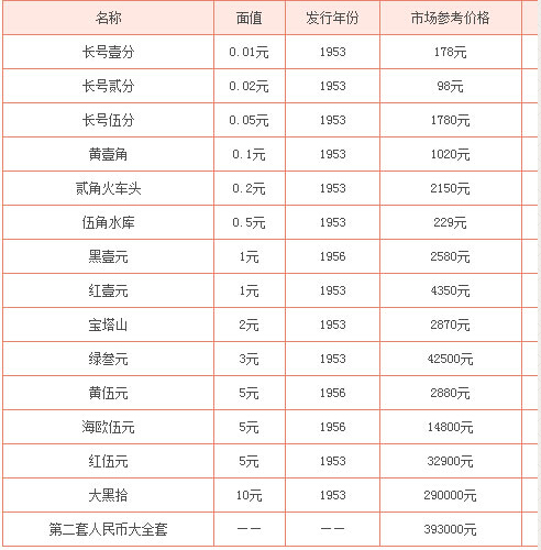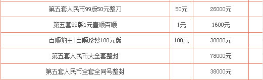 來自金投外匯網數據顯示,人民幣收藏價格表如下: