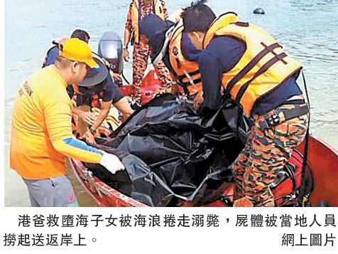 【香港商報網訊】记者周伟立报道:一个港人四口之家本周二在马来西亚浮罗交怡漫步海滩时遽生悲剧!一对年幼子女误踏深水区遇溺,父亲奋不顾身救人时不幸被大浪卷走失踪,最终子女获救,惜慈父却客死异乡,至翌日始被当地搜救人员在其失踪现场对开700米海面寻回遗体,本港入境处正协助肇事家庭善后。