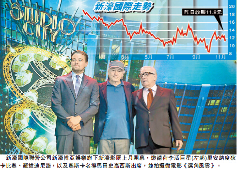 上月新濠影匯開幕,豪擲10億元造勢,更邀得荷里活巨星拍微電影及亮相開幕,世界級陣容排場再次引起市場注意澳門賭業。眼前利好消息包括10月份的澳門賭收比上月好轉,以及澳門政府施政報告將於下周二(17日)公布,市場憧憬有相關旅游政策公布,利好濠賭股,還有12月聖誕旅游旺季亦將至,一眾濠賭股升勢如箭在弦。管理新濠影匯的新濠國際發展(200)自然成為亮點,龍頭銀河娛樂(027)亦值得留意。香港商報記者 譚之穎