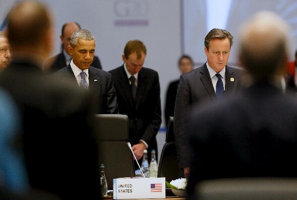 多国领导人在G20峰会上为巴黎恐袭遇难者默哀。路透社