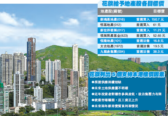 【香港商報網訊】記者鄭達偉報道:本港樓市后向不明朗,拖累本地地產股的股價表現,其中大行花旗昨日更率先全線調低地產股目標價,無疑是雪上加霜。不過該行同時認為,本港樓價經過一輪整固后,或於明年首季出現反彈,預期全年升幅可達3%,長線看好本地地產股的前景。