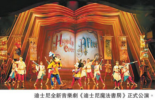 香港迪士尼乐园将於今日起推出全新音乐剧《迪士尼魔法书房》,是乐园历年来最大型的娱乐表演制作,整个表演长达28分钟,当中讲述米奇老鼠、高飞及和魔雪奇缘的小白,以穿梭於7个迪士尼故事作表演,包括《小泰山》、《魔发奇缘》、《阿拉丁》、《魔雪奇缘》等,并於幻想世界的迪士尼故事剧场上演。届时将展示23款原创服饰,多首以63款管弦乐器重新编奏的经典歌曲,为10周年特别创作的主题歌曲《Happily Ever After》更会压轴登场。