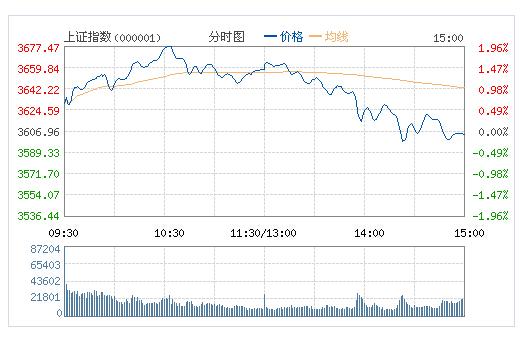 今日大盤沖高后大幅回落,滬指險守3600點,券商、題材股獲利回吐跡象明顯,創業板指跌近3%,兩市近2000股下挫。截至收盤,滬指跌0.06%報3604.79點,成交5215億元;深成指跌0.86%報12511.5點,成交7508億元。