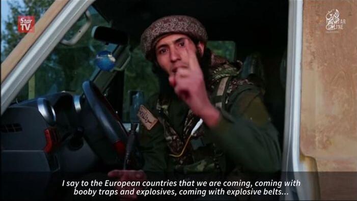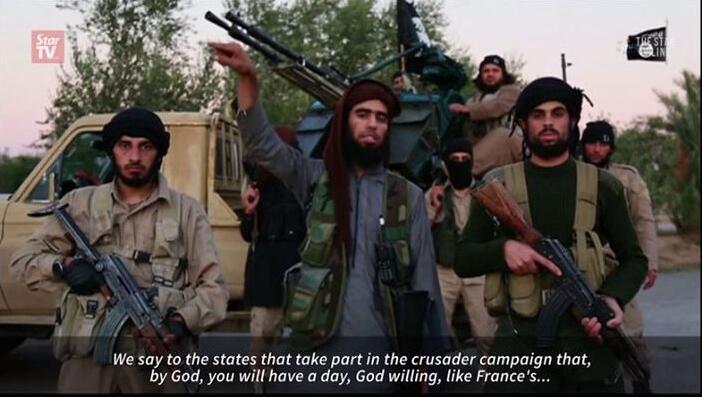 该片段在伊斯兰国经常用来发布讯息的网站发布,片段初时报道巴黎上周五恐袭後的市面情况,其後显示一名男子在放话,警告在敍利亚空袭伊斯兰国圣战士的国家,有一天也会像法国一样。显然是指巴黎上周五遭受的恐怖袭击。他说:「我们攻击了法国巴黎的中心,我们发誓也将攻击美国华府的中心。」