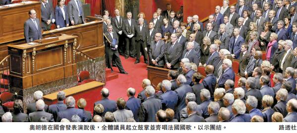 【香港商報綜合報道】當地時間16日,法國總統奧朗德在凡爾賽宮舉行的參眾兩院聯席會議上發表一篇慷慨激昂的演說,宣布法國正處於戰爭,并提出修憲擴權以對付恐怖分子,其中包括驅逐懷疑恐怖分子出境,并可禠奪其法國國籍。法媒認為,這是奧朗德任職以來發表的最重要的講話之一,他宣稱的一系列內外政策將深刻影響法國今后的走向。