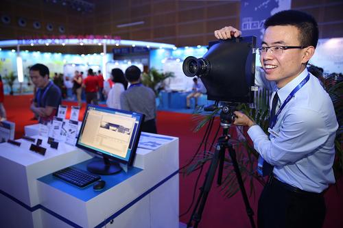 11月16日,在第十七屆高交會的中科院展臺,工作人員用裝有1.5億像素CMOS圖像傳感器的相機拍攝畫面。當日,第十七屆中國國際高新技術成果交易會在深圳舉行。新華社記者 金立旺 攝