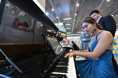 11月14日,一位女士在展會上演示智能鋼琴。11月13日至15日,第九屆中國(合肥)國際家用電器博覽會在安徽合肥濱湖會展中心舉行。此次展會以“智能家電、智慧生活”為主題,眾多國內外知名企業攜新型智能電器產品及智能服務參展。新華社(楊曉原 攝)