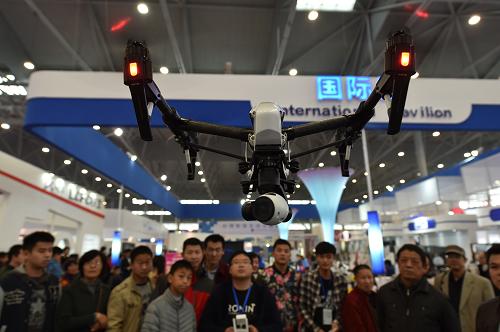 11月14日,一架由“鋰電”提供動力的無人機在展會現場展示。11月13日至15日,第九屆中國(合肥)國際家用電器博覽會在安徽合肥濱湖會展中心舉行。新華社(楊曉原 攝)