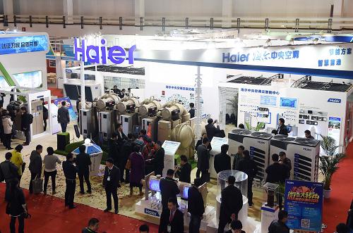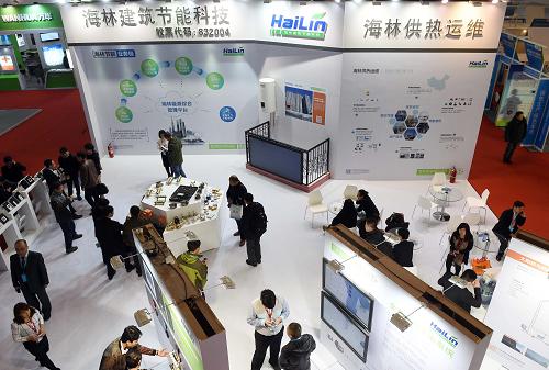 11月18日,參觀者在海爾展位參觀。2015中國國際節能低碳創新技術與裝備博覽會于11月18日至20日在北京中國國際展覽中心舉行。本次博覽會以綠色生產、綠色生活為主題,展覽展示國內外高效工業鍋爐窯爐、節能電機及傳動、低溫余熱利用、樓宇智能控制、能耗在線監測等節能低碳重點領域近1000項創新技術與裝備。新華社記者 陳曄華 攝