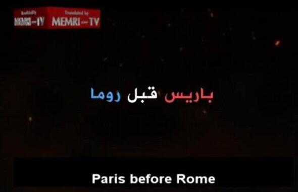 画面随後又出现熊熊大火,并点名意大利罗马将是巴黎後下一个要攻击的欧洲目标。