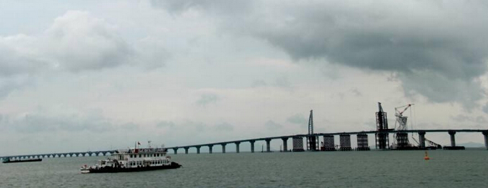 其中,海中大桥起点是香港大屿山,经大澳,跨越珠江口,最后成Y字形,一端连珠海,一端接澳门。此次完工的九洲航道桥段,是3个海上桥梁标段中工程量最大、结构形式最复杂的标段。该标段全长6.653公里,主要包括九洲航道桥、珠澳口岸人工岛连接桥、互通立交等工程。