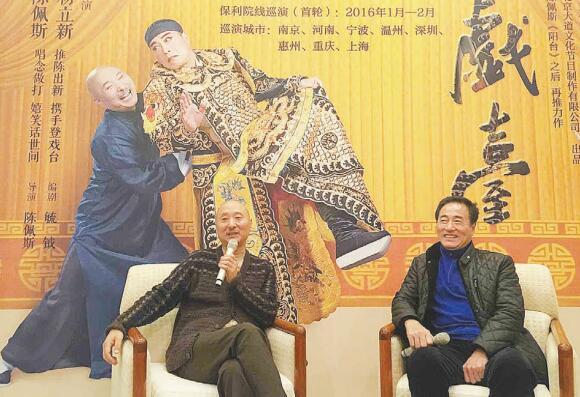 11月18日10點30分,在北京保利劇院舉行了著名喜劇表演藝術家陳佩斯擔當導演、并攜手楊立新共同主演的年代喜劇《戲臺》的新聞發布會,向全國媒體推介這部「零瑕疵」的喜劇作品,并宣布《戲臺》將於2016年1月到2月在上海、南京、深圳、重慶等8個城市進行演出。該劇是由毓鉞編劇、陳佩斯導演、陳佩斯與楊立新攜手主演的一部年代喜劇,講述的是民國時期軍閥混戰背景下,發生在某個戲班后臺的故事。該劇由大道文化與北京保利劇院聯手打造,深圳將於1月22日-24日在保利劇院上演3場。