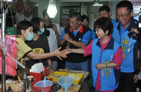 洪秀柱随后前往有“金门西门町”之称的山外,陪同杨镇浯扫街拜票,所到之处响起欢呼声,她也不时停下脚步逗逗幼童,并与店家亲切闲话家常。