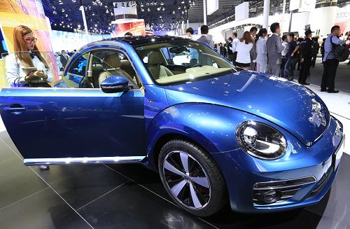 11月20日,觀眾在車展上觀看新款甲殼蟲汽車。當日,第十三屆中國(廣州)國際汽車展覽會在廣州中國進出口商品交易會展館舉行媒體日活動。新華社記者 李明放