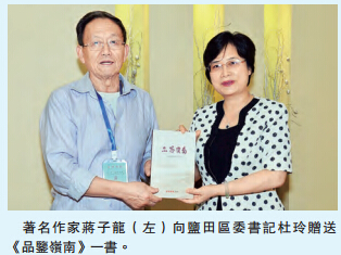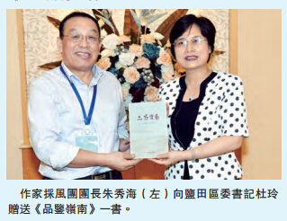 【香港商报网讯】记者童越、林丽青报道:2015「品鉴岭南」中国着名作家盐田采风行23日正式启动。昨日下午,作家采风团一行抵达盐田,体验深圳改革开放精神风貌和摇曳多姿的海滨风情。同日下午,深圳盐田区委书记杜玲等会见了作家采风团一行。杜玲感谢香港商报邀请如此多作家到盐田采风,并期待盐田能给作家们创作带来灵感。作家采风团团长朱秀海表示,自己早就慕名向往中英街,这次来一偿所愿,非常开心。当天,朱秀海就与盐田区达成初步意向,明年到盐田区来写有关中英街的电视剧本,并与央视传媒一起推出该剧。