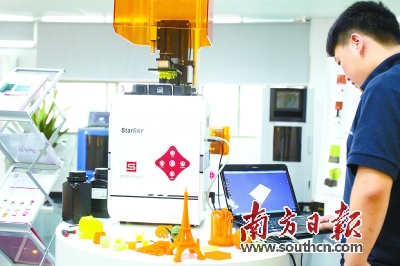 模具產業協同創新中心的智維股份公司,一位技術人員正在測試3D打印機。