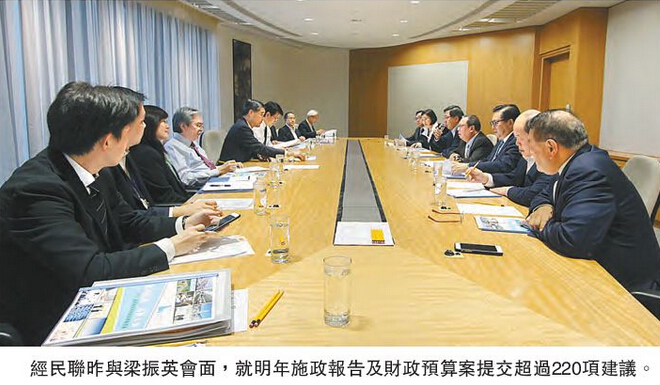 【香港商报网讯】记者冯仁乐报道:发展经济、重视民生一向是特区政府的施政重点。经民联昨日与行政长官梁振英及财政司司长曾俊华会面,以「把握机遇筹划未来」为主题,为2016年《施政报告》及《财政预算案》提交超过220项建议,内容涵盖教育及经济等层面,包括建议政府提高基本免税额、成立一带一路发展委员会、研究发展绿化地带作为公屋及居屋用途,以及暂停小三全港系统性评估(TSA),并尽快检讨其运作等等,冀政府正视市民及中小企诉求,促进香港经济发展,为新生代创造机会。