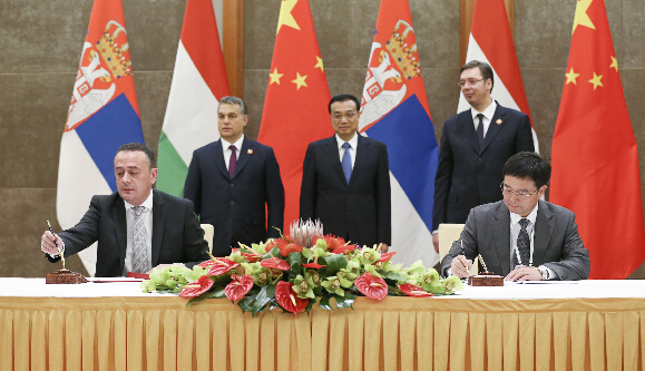 11月24日下午,第四次中国-中东欧国家领导人会晤后,中国国务院总理李克强和匈牙利、塞尔维亚两国总理共同见证16+1合作“旗舰项目”匈塞铁路两个合作文件签署。文件分别涉及匈塞铁路匈牙利段和塞尔维亚段,意味着这一项目将确保年内开工,两年完成。