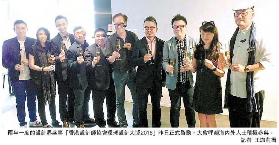 香港设计师协会正召集各设计师、设计拥有者、设计使用者、品牌拥有者及其设计师或设计顾问,参加香港设计师协会环球设计大奖2016。比赛共分4个设计组别,包含41个衍生组别,涵盖设计界的专才领域。参赛者的参赛作品数量不设上限,惟作品必须在2013年11月10日至2016年1月31日期间,已实际完成并制成产品,於任何一个市场推出及售卖。大会设金、银、铜及优异奖、香港之最与评审入选奖项,以表扬各项卓越设计。