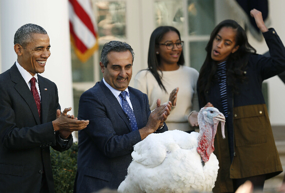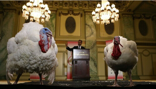 今年的“年度感恩节火鸡特赦大典”上,奥巴马再次改变了两只火鸡的命运:一只叫“忠诚”(Honest),一只叫“安倍”(Abe)。而“安倍”获得了“总统特赦火鸡”的殊荣。