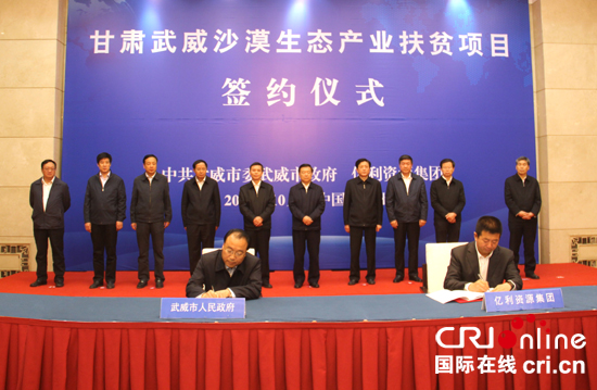 10月21日,甘肅省武威市沙漠生態產業扶貧項目在蘭州成功簽約,“全球治沙領導者”億利資源集團將在武威市民勤縣、涼州區、古浪縣等地投資150億元發展沙漠生態產業,實施精準扶貧。