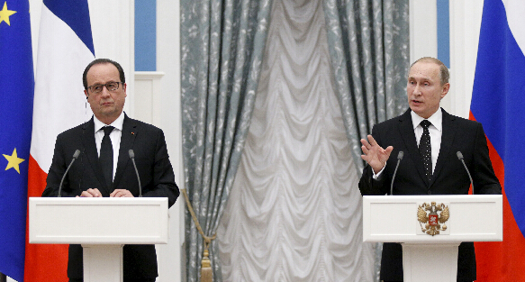 俄罗斯总统普京和到访的法国总统奥朗德26日在克里姆林宫共同会见记者时表示,俄法商定在叙利亚进行反恐方面开展双边协作,并与美国领导的打击极端组织“伊斯兰国”国际联盟开展协作。