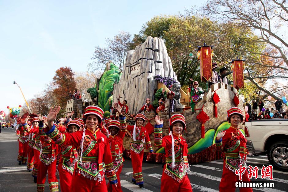 當地時間11月26日,紐約舉行第89屆梅西百貨感恩節盛裝大游行,中國昆明主題花車驚艷亮相這一全美歷史最悠久、最具影響力的感恩節盛典。此次主題花車由美中友好協會攜手中國昆明市旅游發展委員會、石林風景名勝區管理局、梅西百貨公司等共同制作呈現。 中新社記者 阮煜琳 攝
