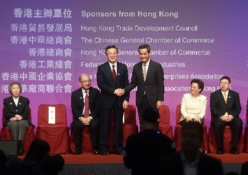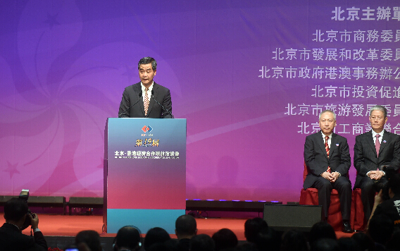 11月27日,第十九届北京-香港经济合作研讨洽谈会在香港举行,香港特区行政长官梁振英(右)、北京市常务副市长李士祥出席。本届洽谈会以“互通要素、双向投资、同享机遇、共创繁荣”为主题,围绕北京市服务业扩大开放相关的六大领域进行深入和务实的洽谈,包括科学技术、因特网和信息、文化教育、金融、商务和旅游、健康医疗等方面。