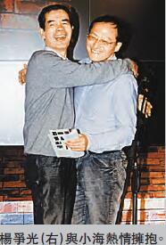 聽聞此言,在臺下就坐的深圳作家楊爭光微笑著在觀眾的掌聲中起立,走上舞臺,與小海來了一個深情的擁抱。因為詩歌而結下的30年友誼,在「詩歌人間」現場定格。