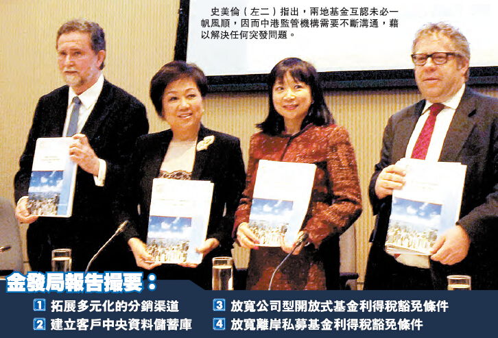 現時,香港的基金產品只有單位信託基金,公司型開放式基金及私募基金尚未進駐市場。金發局建議政府制訂相關政策,使本港成為上述基金公司的首選運營地。包括不應對私人公司型開放式基金董事的居留地加以限制,容許符合條件的公司享利得稅豁免。同時,豁免公眾及私人公司型開放式基金繳付股份轉讓時的印花稅。