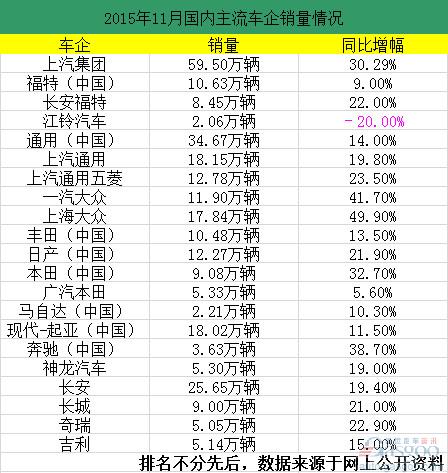據上汽集團于本周二披露的銷量數據,2015年11月份,上汽集團銷售汽車59.5萬輛,同比增30.29%;生產汽車60.38萬輛,同比增34.45%。