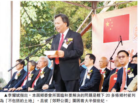 【香港商報網訊】記者周駿報道:西貢北約鄉事委員會早前舉行第26屆執行委員就職禮,新任鄉委會主席李耀斌指出,西貢北約鄉轄下20多條鄉村被當局列為郊野公園「不包括的土地」中,鄉村交通及道路設施嚴重不足,一些村落甚至無水無電供應,令居民猶如活在沒有圍網的禁區內,而很多在港九新界返工村民、回流本港的僑鄉有意還鄉卻不能歸。鄉議局主席劉業強指,政府職責除要令發展符合經濟效益,亦要解決民生問題。