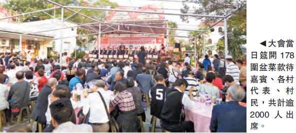 當日出席就職禮的該鄉各村代表、村民逾2000人。下午3時正,與會人士全體起立,奏國歌,之后,進行各項程序,其中,由大埔民政事務專員蘇植良監誓,李耀斌帶領副主席及全體鄉委會執委宣誓。大會其后對服務鄉村23年至30年原村長、村民頒贈長期服務獎狀及感謝獎,獲獎的荔枝莊原村長、92歲高齡的李茂表示,由1982年至2012年服務該村30年,由於荔枝莊交通不便,多年前遷至大埔居住,現時村屋荒廢,幾年前也將私地賣掉,雖兒孫三代同堂,但他仍希望落葉歸根。