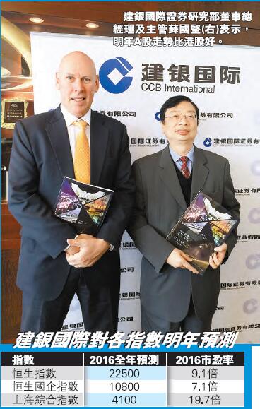 對於看好A股走勢,他解釋,內地減息能減輕企業財政負擔和改善盈利,有助存款用作消費和投資,令內地投資前景較好。相反,美國加息帶動美元走強,導致與美元掛恥的港元亦相對價值較貴,本港融資成本增加,導致外資公司透過QFII(合格境外機構投資者)直接把資金流入內地公司,所以看好明年A股表現。